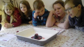 I made 4 different jellies for Amy to taste that were all the same flavour but different colours.